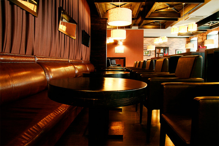 Мебель ресторана весьма разнообразна: от круглых столиков, до массивных столов с комфортабельными креслами.
